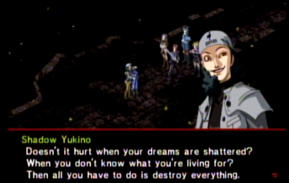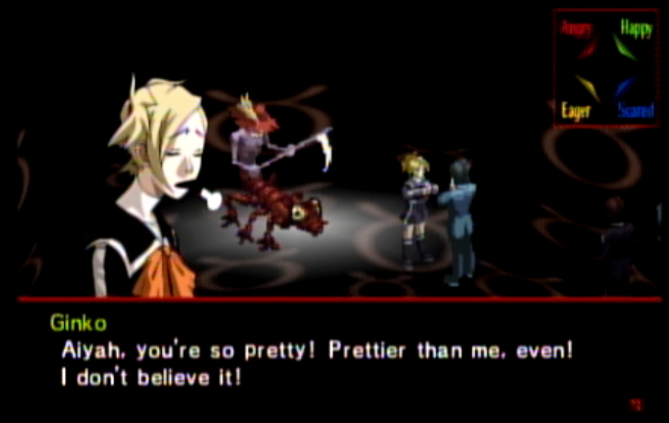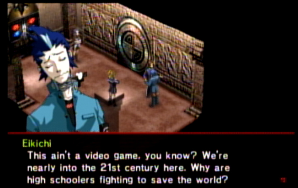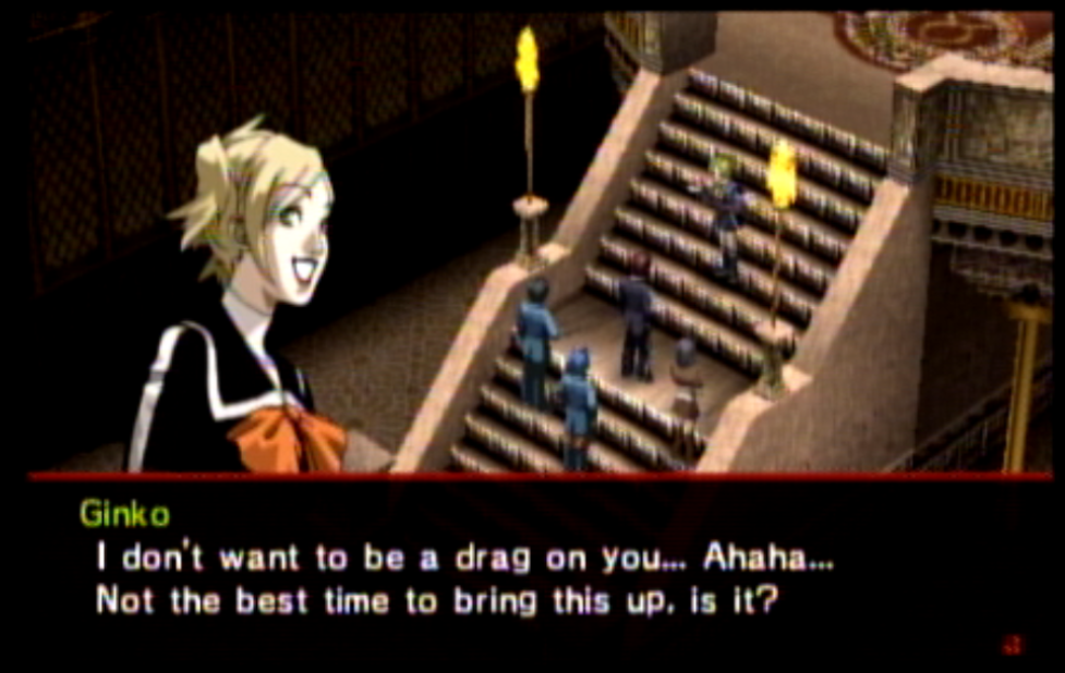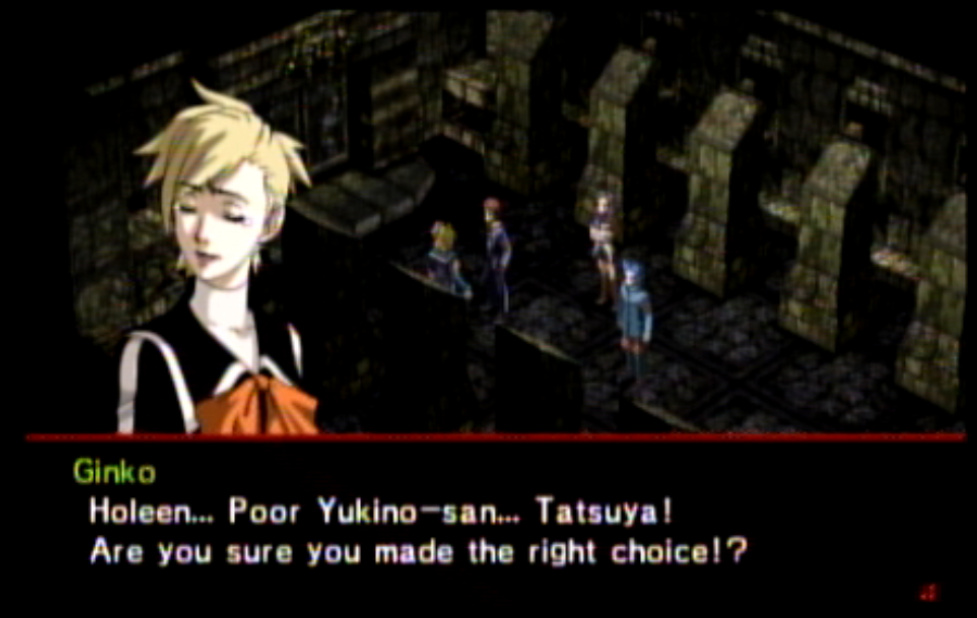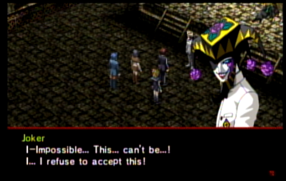 : Before I played this game, I had read that Persona 2 has the strongest writing of all the games. Maybe that’s Eternal Punishment more than Innocent Sin, because mind control villains are honestly just a sign of bad writing.