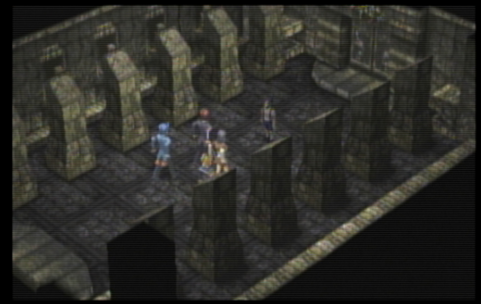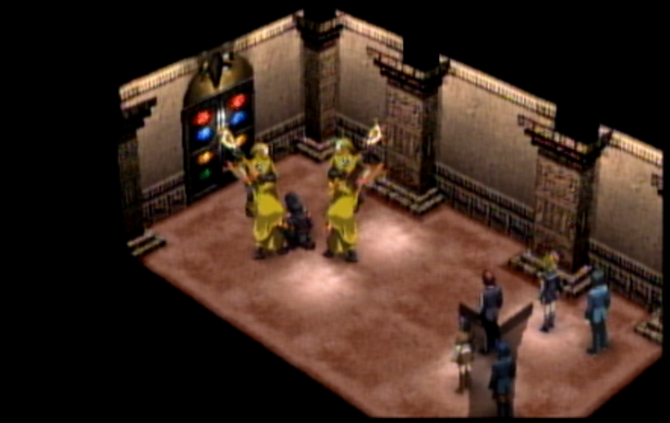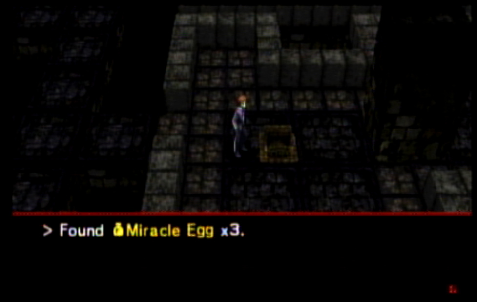 : The next room is a miniature teleporter maze (not really much of a maze) that can be completely bypassed by walking around it. The teleporter to Tatsuya’s right takes you to an item box in the middle of the room, but getting the item puts you back in the conveyor belt room.