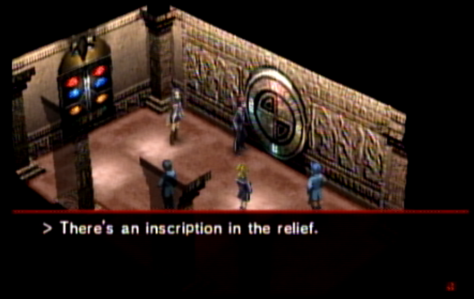 : Hmm… three colored lights. You can’t see it, but each one of these is a tower. Does this remind you of anything? A certain alternate (yet canon) story route in Persona 1? Yes, we’re about to go into what is basically an exact copy of Snow Queen.