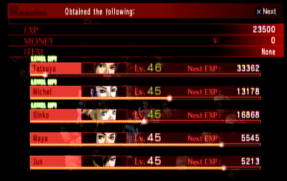 : And with that, the party is dangerously close to 51. They’ll be a minimum of 49 by the time I finish Taurus again (which I still haven’t done) and I might need to fuse something with that Estoma card to make sure I don’t overlevel.
