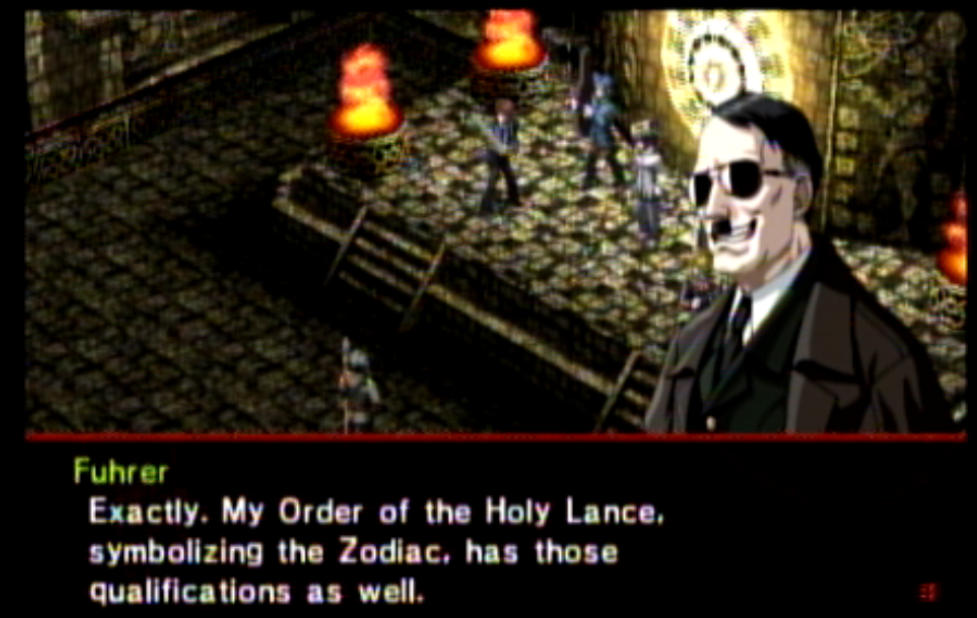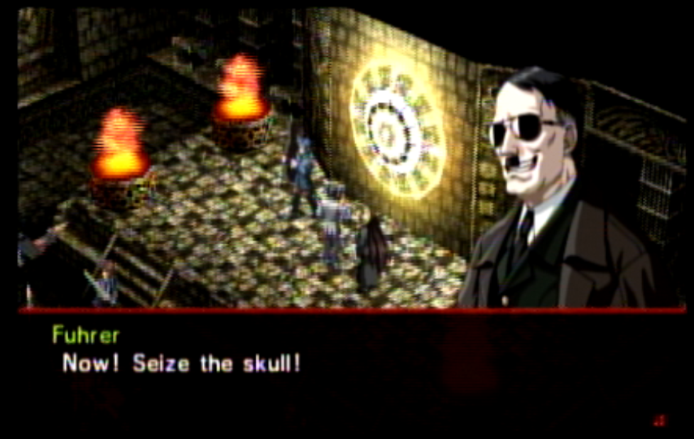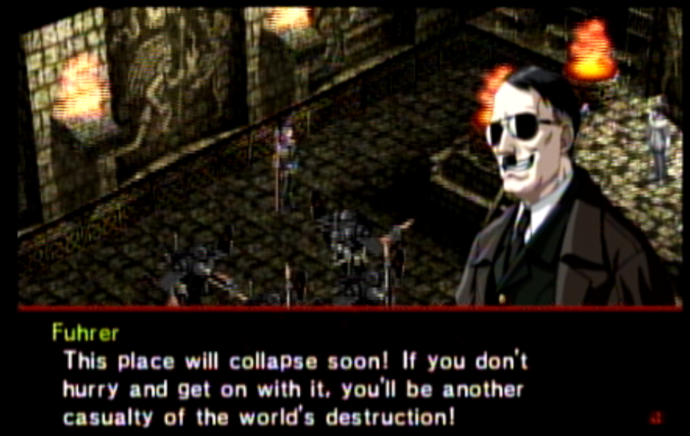 : Meet one of the other reasons people gave for this game not being localized. In the initial release, Hitler was of course referred to by name and didn’t have the sunglasses.