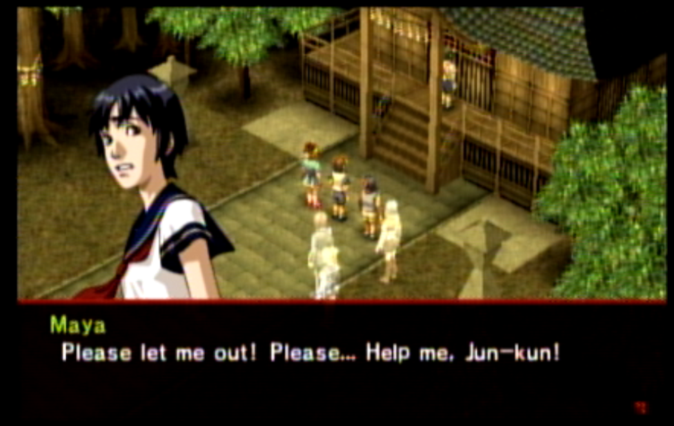 : You can’t see it very well, but there’s a sequence where Eikichi and Tatsuya force Maya into the shrine and lock the door. We already know this isn’t how it happened. Strangely, I thought they were going to do something with the whole “Tatsuya Suou vs Tatsuya Sudou” thing but they never do.