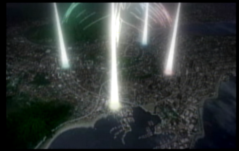 : The light pillars roughly correspond to the last few dungeons we did. The southern one is the Aerospace Museum, the Western one is Aoba Park, the Eastern one is Smile Hirasaka I think, and the northern one is GOLD.