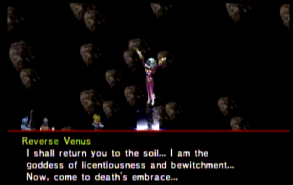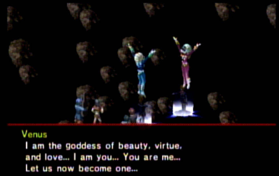 : Shadow Yukino’s Persona, going along with the theme, is Reverse Durga. She’s incredibly weak to Water, but weirdly does not use any Fire-element attacks at all apart from a single melee attack.