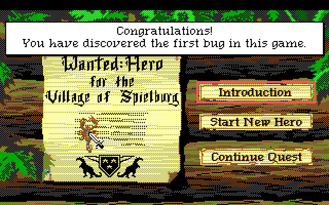 The series was originally titled Hero’s Quest. However, Sierra failed to trademark the name. The Milton Bradley Company successfully trademarked an electronic version of their unrelated joint Games Workshop board game, HeroQuest, which forced Sierra to change the series’ title to Quest for Glory. This decision meant that all future games in the series (as well as newer releases of Hero’s Quest I) used the new name.