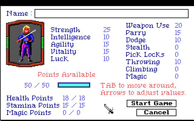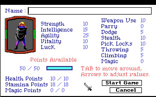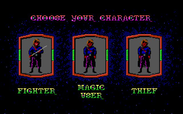 Quest for Glory allows the use of three character classes, Fighter, Magic User and Thief. While usually I would say go nuts and pick one, I’ve been playing a Magic User in my weekly streams and I’d really rather do something else for it. Ultimately I will go over the differences in content and puzzlery for the classes not picked, but we’re going to be doing the main run as either a Fighter or a Thief, which I will leave to a poll.