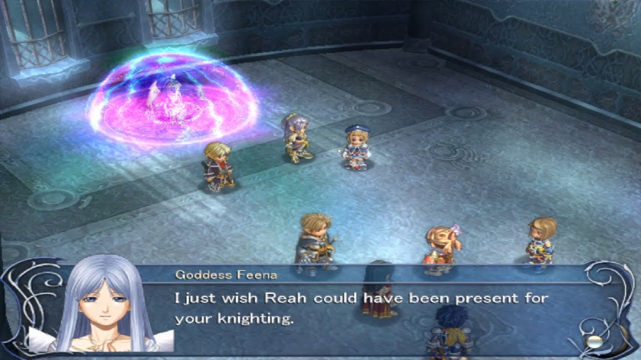 Demons plague the surface world, and only with the help of the two Goddesses, Reah and Feena, were some humans brought to safety on a floating continent. But this safety could never last with such persistent devils, who constructed a tower to pursue their victims to the sky. And to make matters worse, the two Goddesses suddenly vanished, and no one knows why. A group of knights band together and make for the surface to find them, but are quickly scattered to the wind before they even reach the ground. And so we join the knight-in-training, Yunica, as she recovers from her sudden fall, and must journey through the tower to find the missing Goddesses.