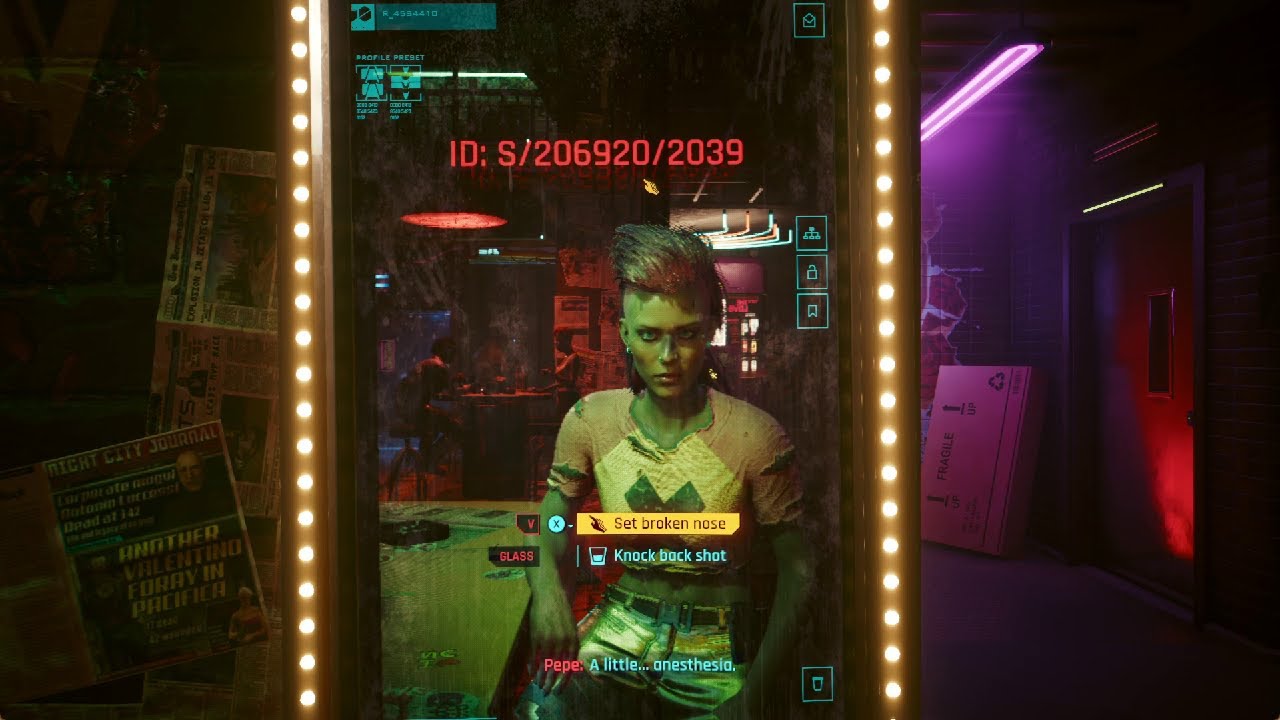 Well, it seems we caught a virus while rescuing that mostly-dead woman. Not the biggest surprise, I guess. And it seems like we have a great new job lined up, so we’ve got a busy afternoon ahead of us. Which is wild because a regular doctor visit would be the thing you’d do in a day, but we’re good to go after a visit to the guy who can stuff technology into your eyeballs. I guess people are just more motivated in 2077.
