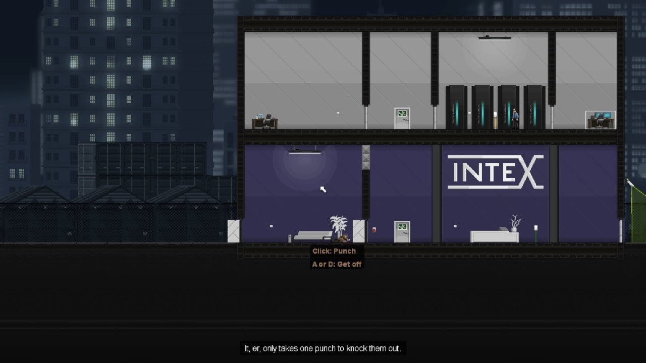 Welcome to Gunpoint, an indie puzzle game where a noir detective with jump-pants accidentally gets involved in the murder of a company employee. And when I say “involved,” I mean he gets caught on camera and has to delete the evidence he was in the same building as the murder, lest he wind up the prime suspect. And that’s the level of competence you can expect from our protagonist!