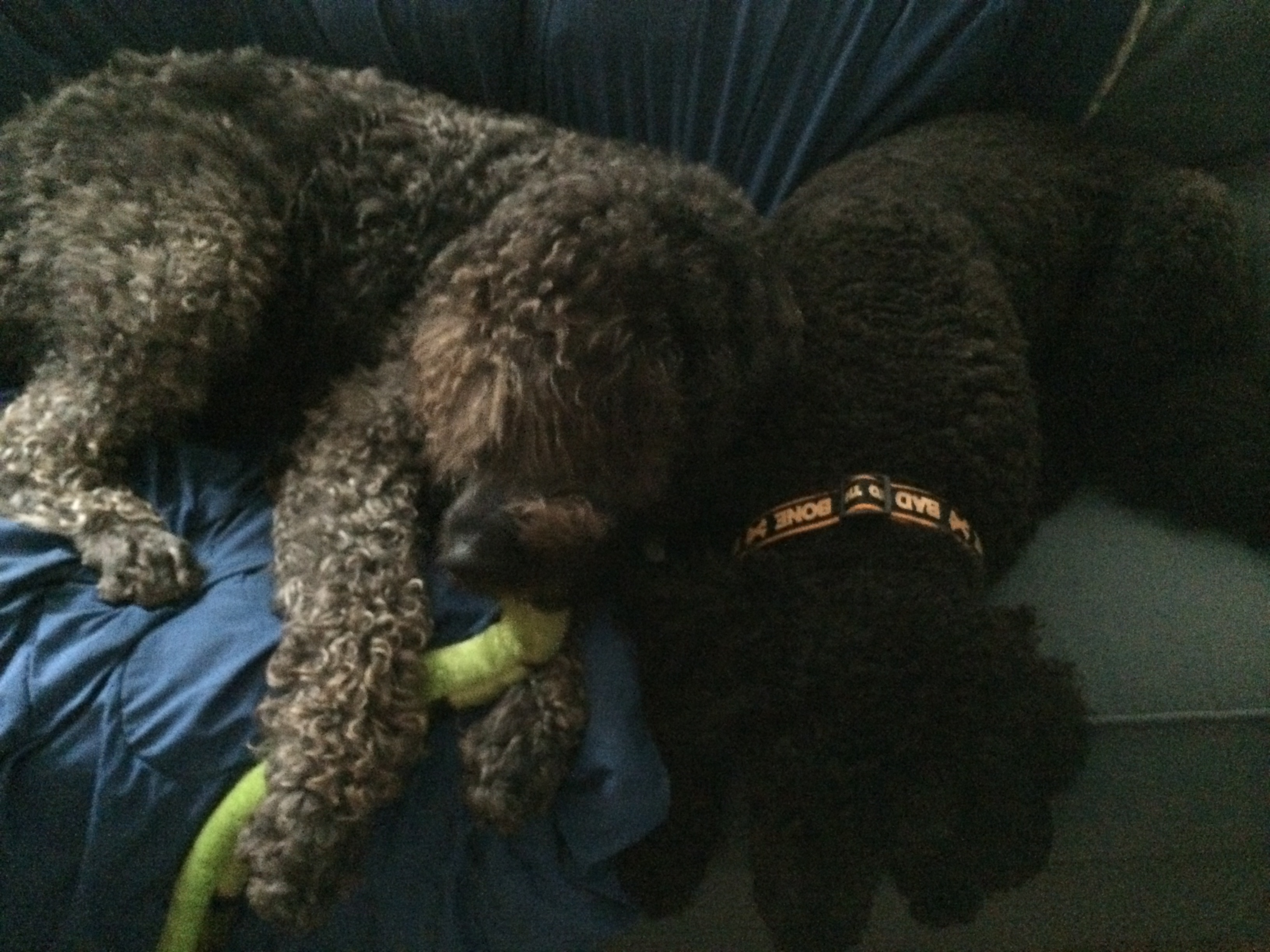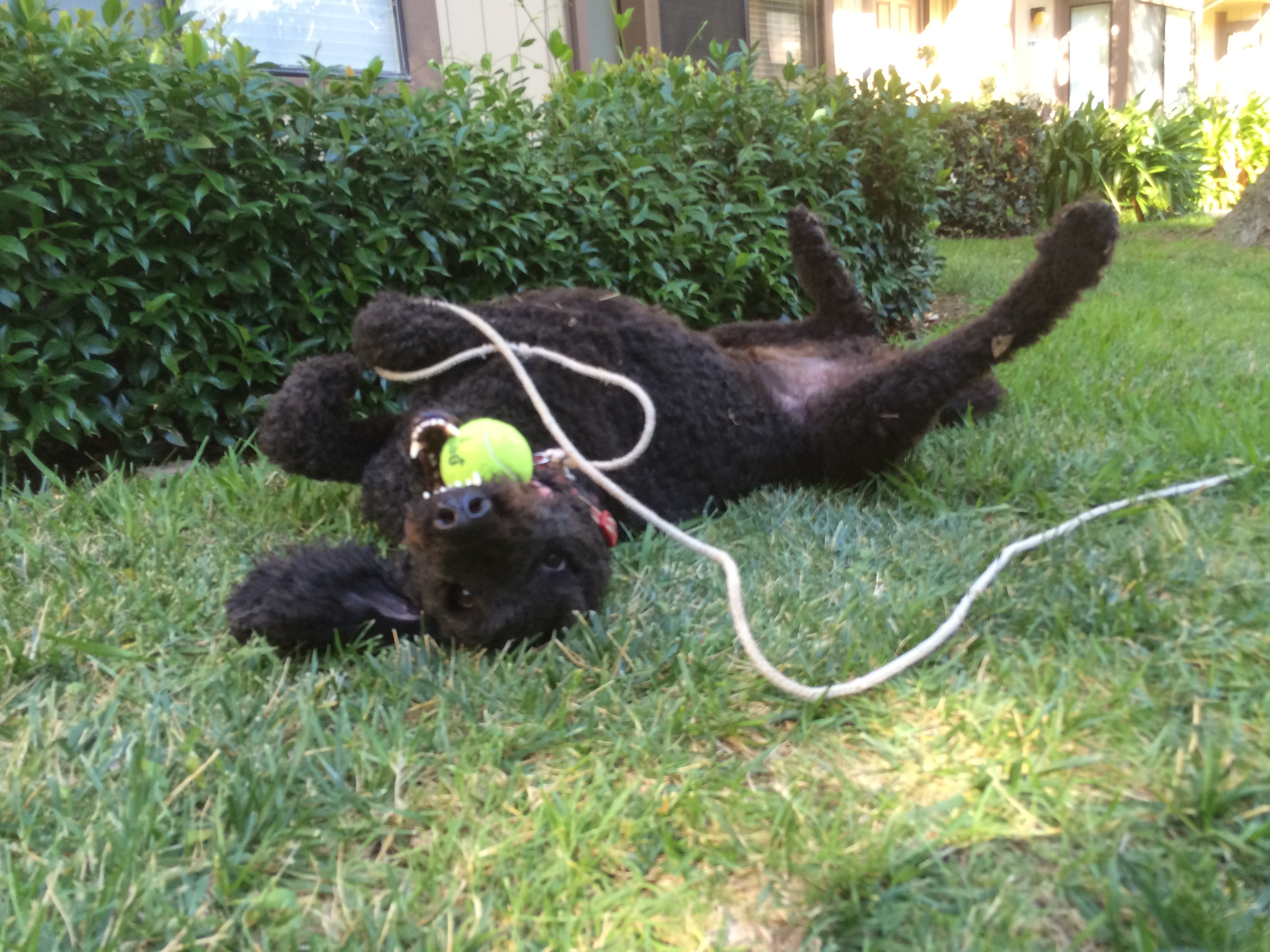 Rio is 75% Golden, 25% Poodle. He’s smarter than he wants me to think, but not as smart as he thinks he is. We got him from the same breeder one of our old neighbors got their dog from, a flat 50/50 doodle who became a family friend.