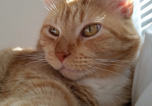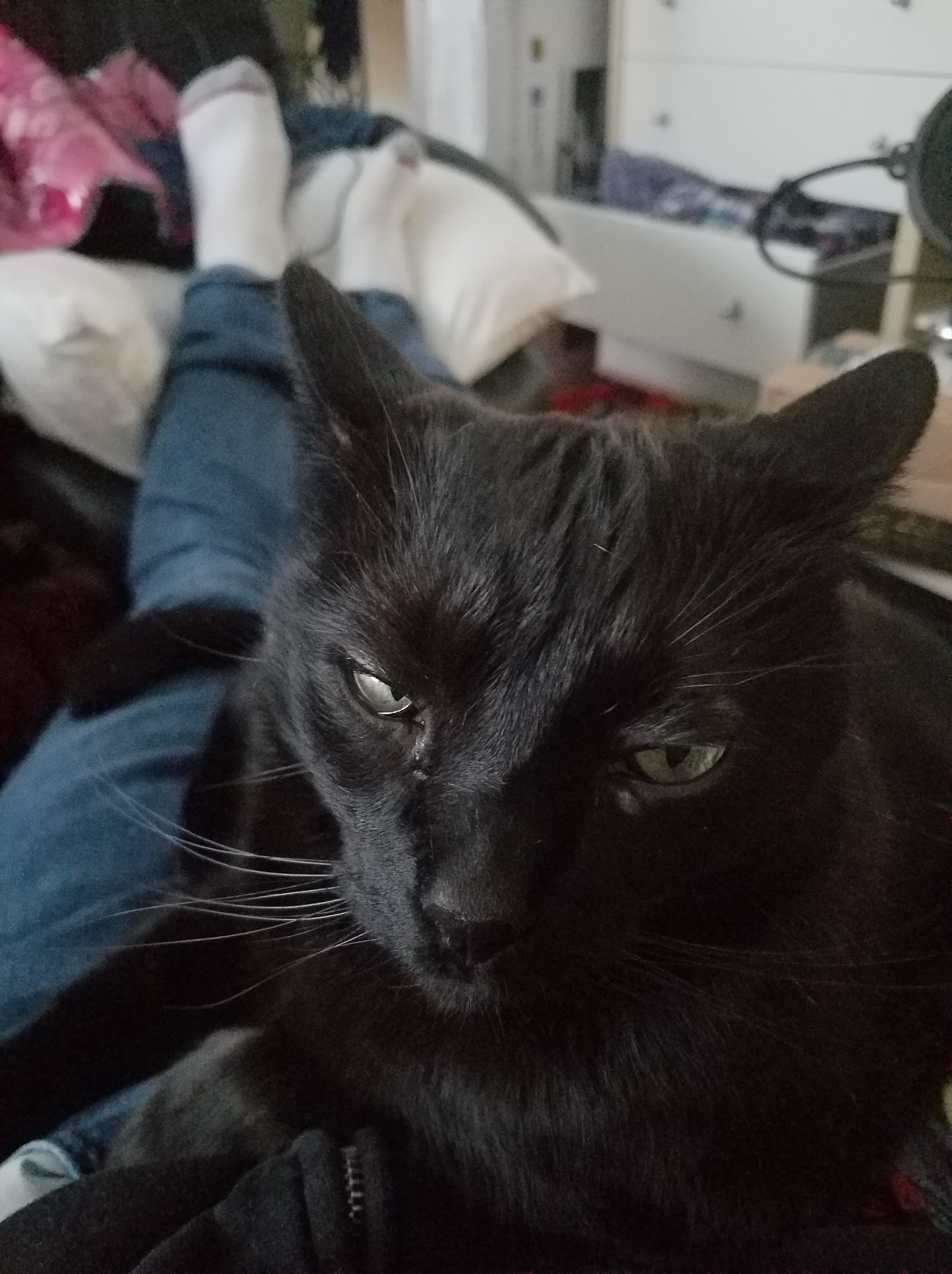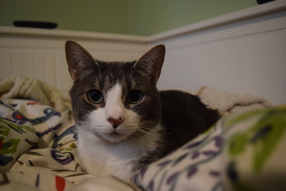 Here’s our other cat, Nyx. She’s a rescue and a super chill cat.