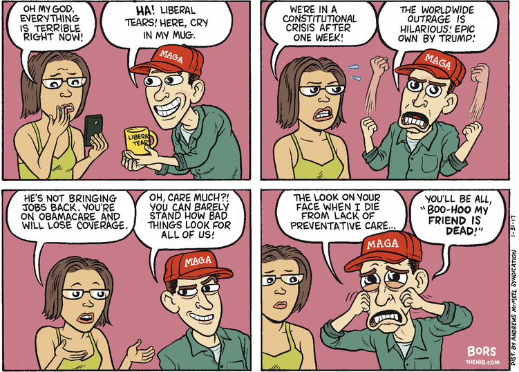 Meme I wanna keep: “A Good Cartoon” (AGC): A political cartoon where, in trying to decry something, actually makes it seem good or otherwise can be easily interpreted to have the completely opposite meaning. Here’s a good example by professional conservative hatemongering fuckface AF Branco: