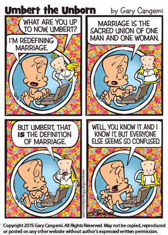 Aside from being super ham-handed, I’m really enjoying that the only place where the actual point of this cartoon is made is in super tiny print on the apron that you have to lean uncomfortably close to your monitor to actually read.