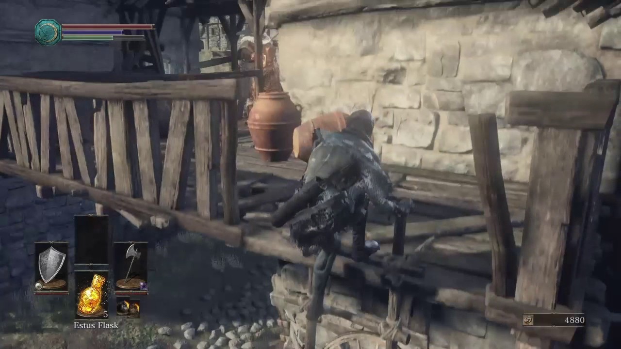Dog, why’s it always gotta be dogs? The Undead Settlement is a horrific place full of hanging corpses and tortured souls. Villagers can be found throughout who are the remnants of those who both lived here and who dealt with the undead. We discover corpses of what appear to be bodies made out of roots and tree. We learn that the villagers took to cutting up then burying the undead to get rid of them, perhaps this is what led to these deformed tree corpses. Up in the tower in the distance we spot a giant archer who appears to be, firing, arrows? How ridiculous. In any case we make our way through the settlement and meet up with a few new faces after dodging huge arrows and fighting our way past a dark phantom. After a lot of trouble we manage to discover a pit of hollows and corpses and are able to join the mound makers.
