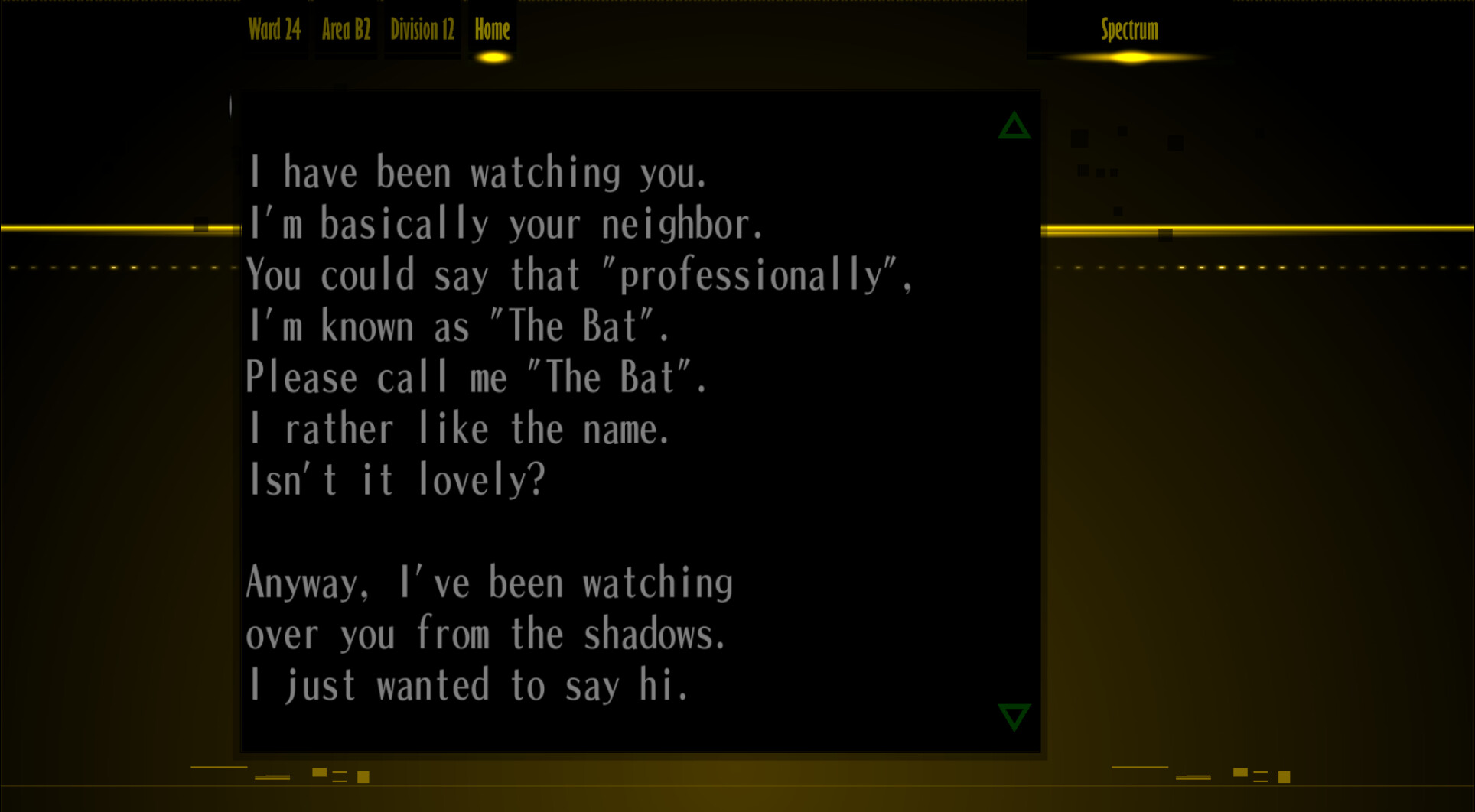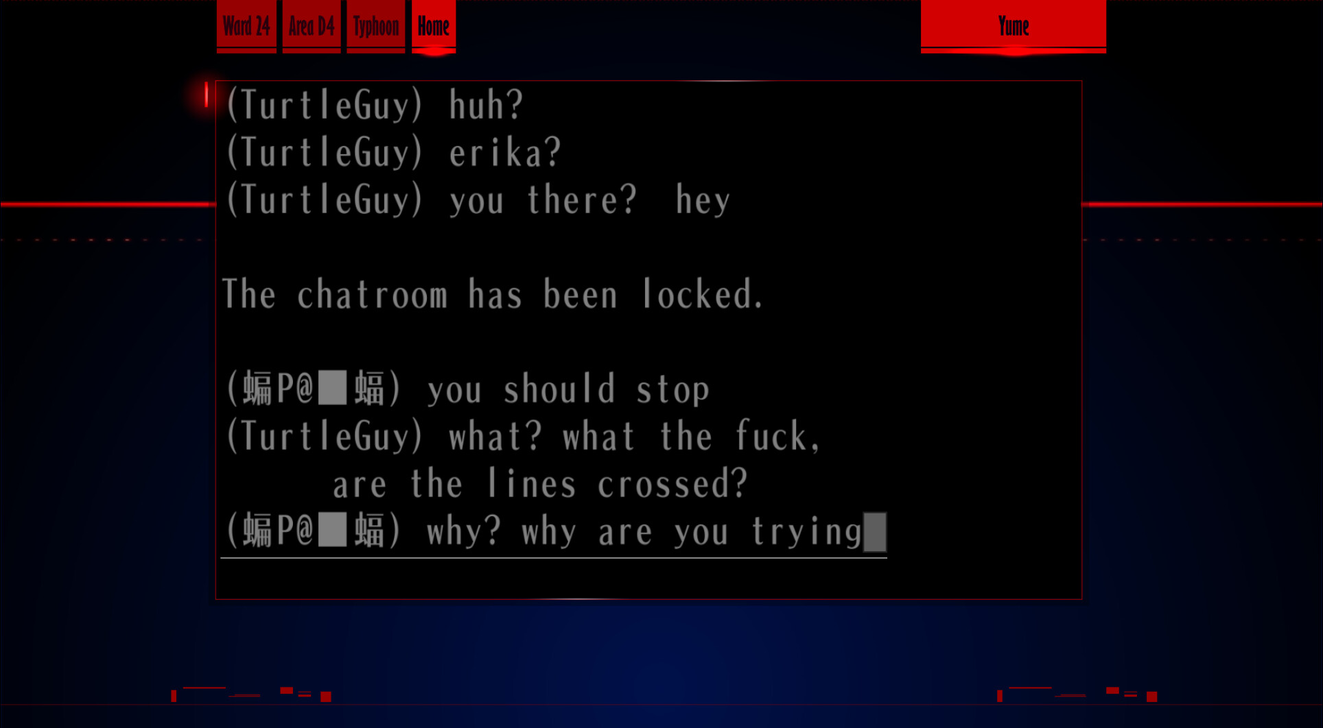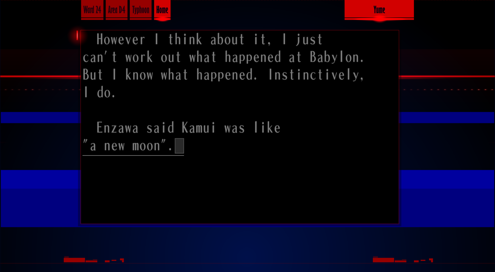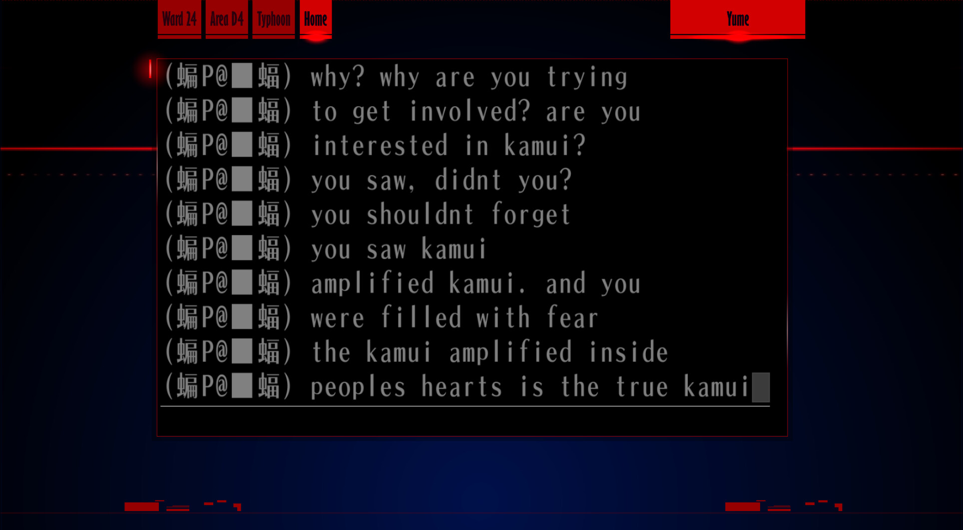 : “Hehehe, you don’t know what that means, do you? Huh? What? What’s that? I wonder who that is… who was it… something doesn’t feel right.”