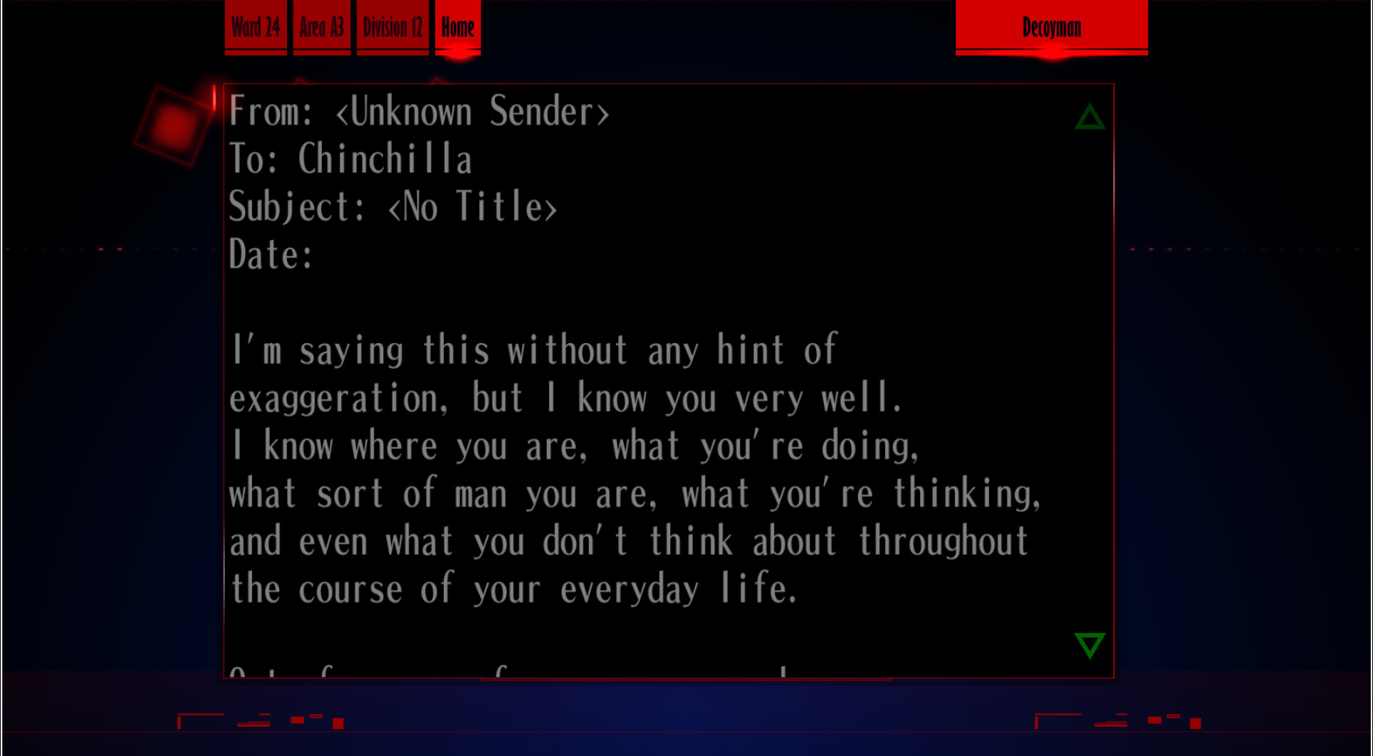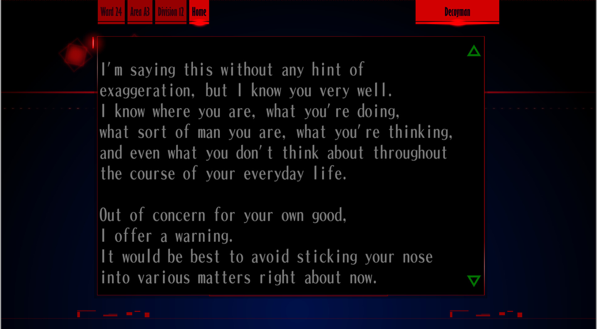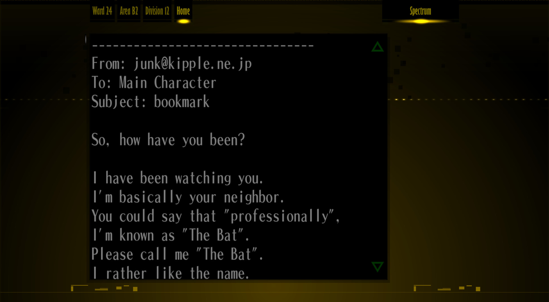 : “Hehehe, you don’t know what that means, do you? Huh? What? What’s that? I wonder who that is… who was it… something doesn’t feel right.”
