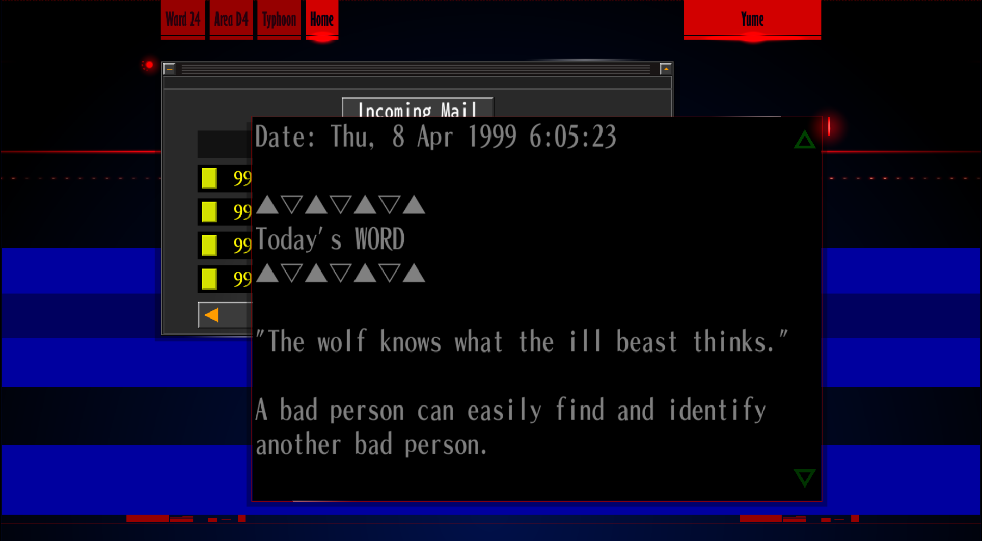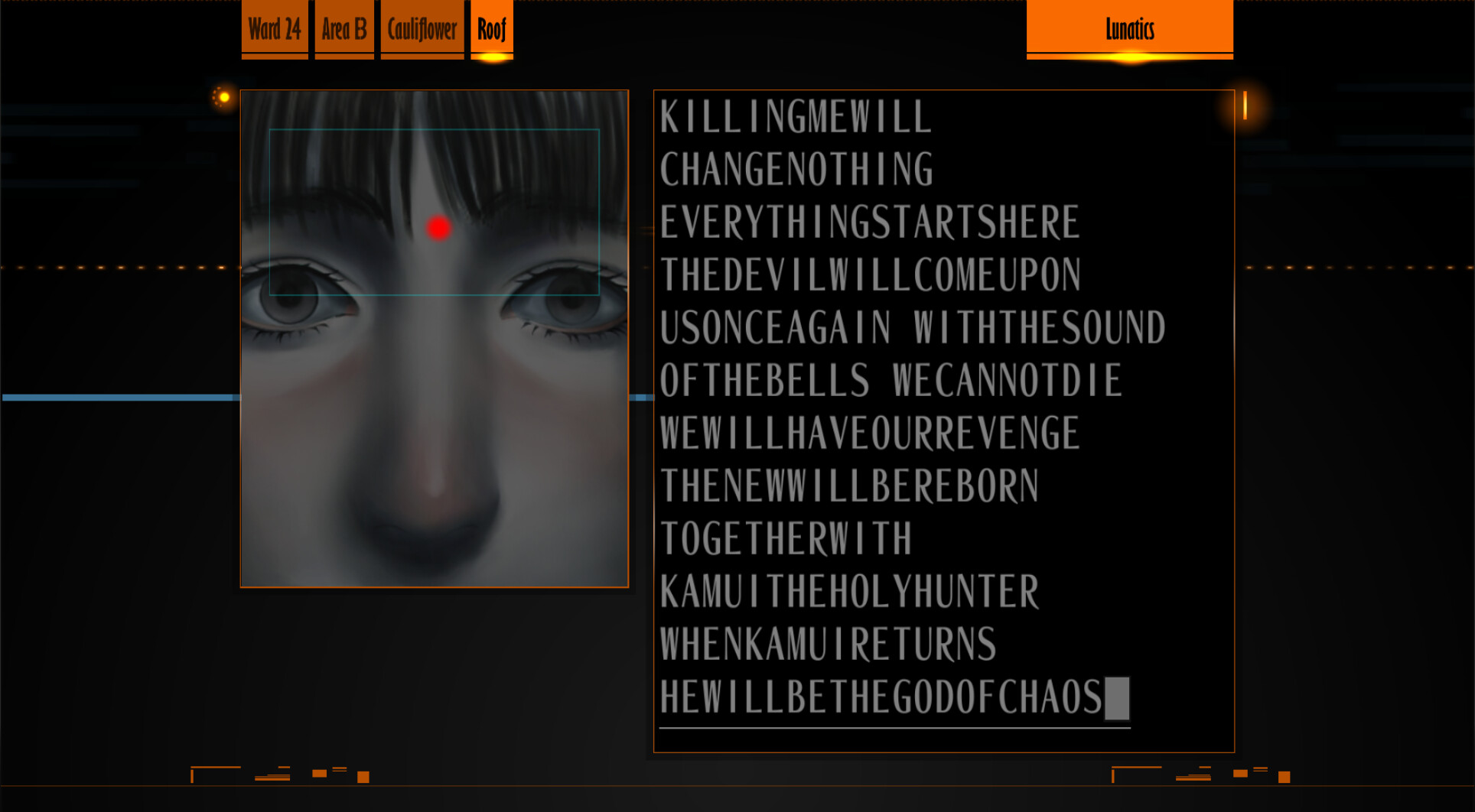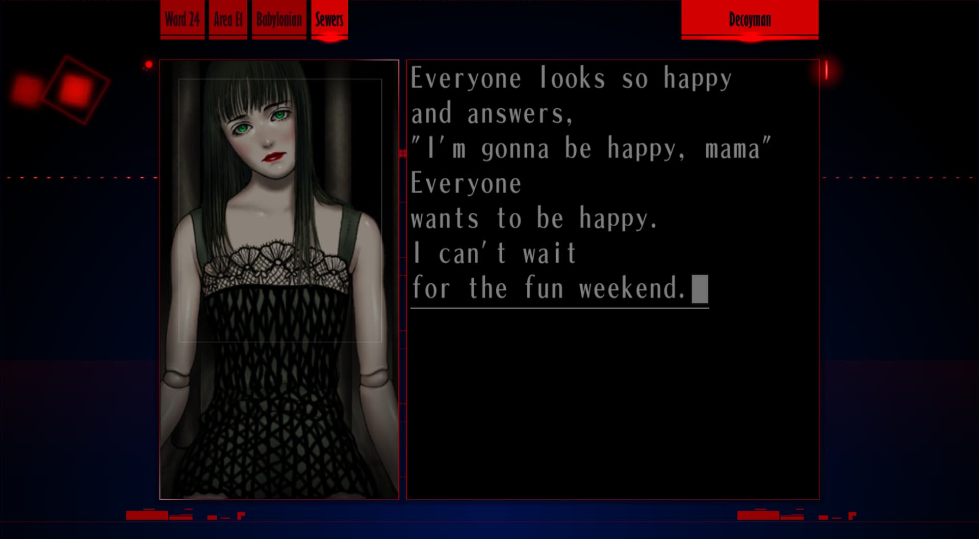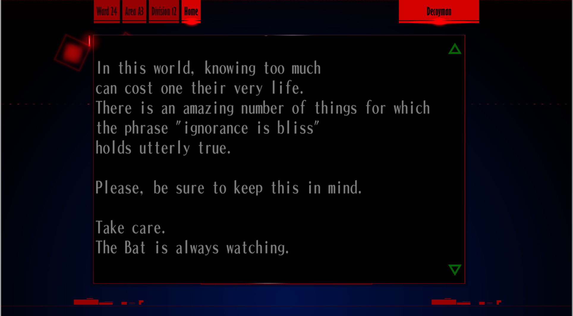 : “Hehehe, you don’t know what that means, do you? Huh? What? What’s that? I wonder who that is… who was it… something doesn’t feel right.”
