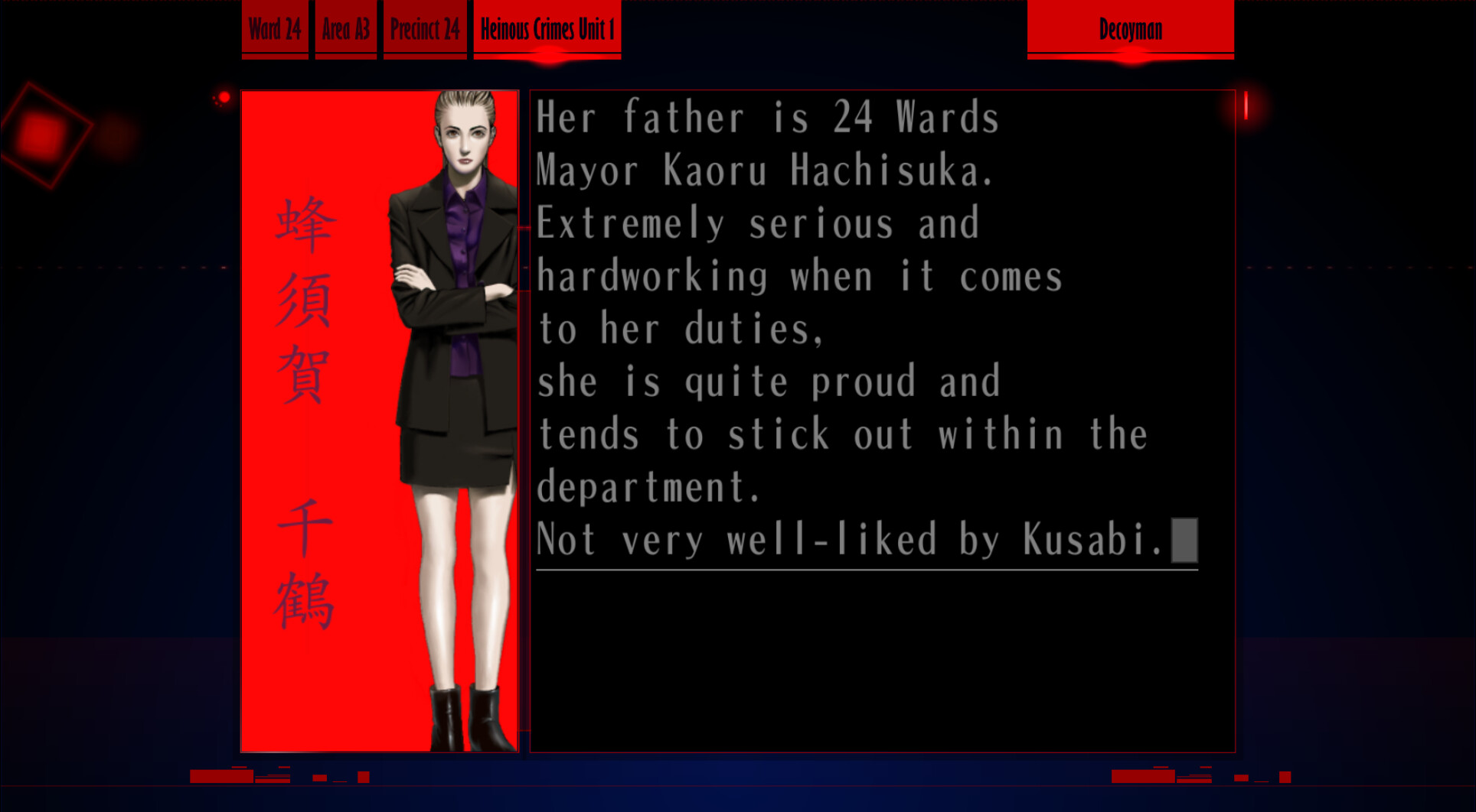 : To end the case, all we have to do is go to the interrogation room and talk to Chizuru.