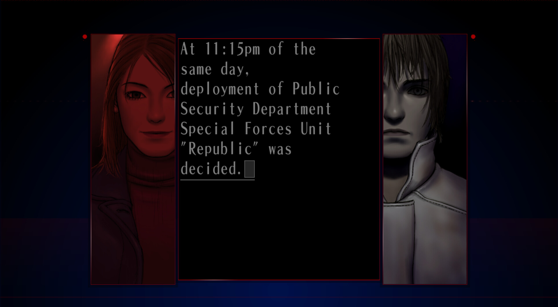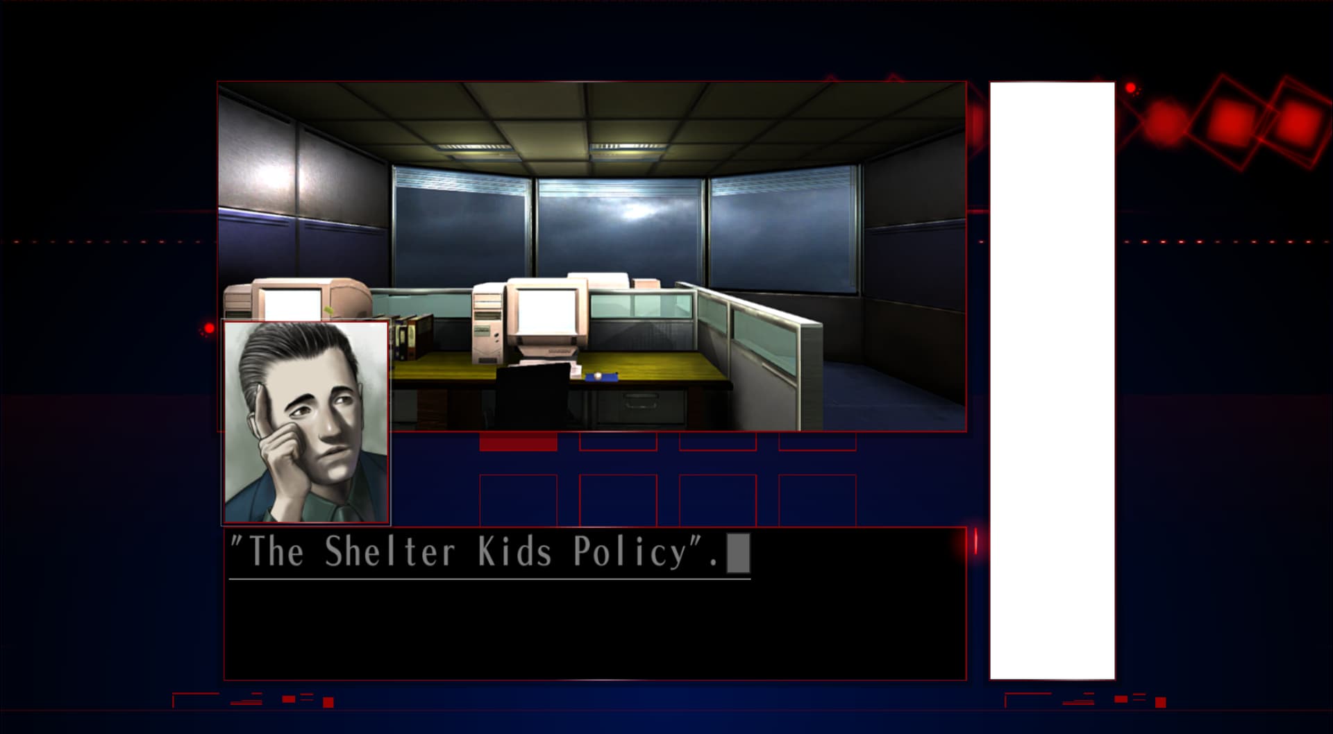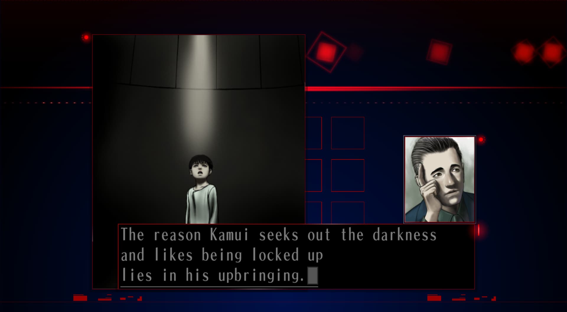 : “Let’s get down to business… that kid, Koichi Sugita. He’s the key to this case. It’s clear that the after-effects of the incident are still there. But he has no subjective symptoms.”