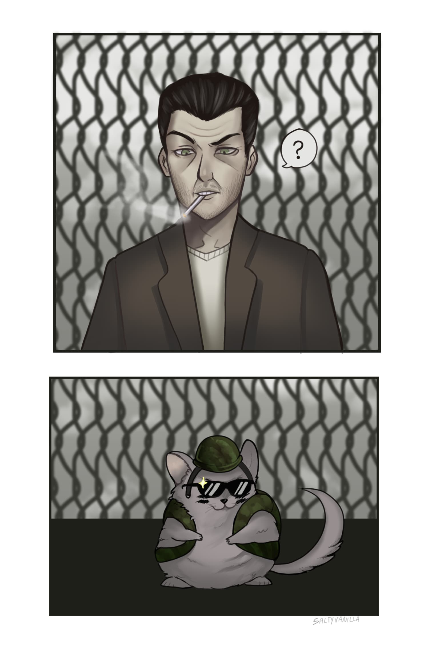 : “That guy’s always watching us… this time he chased after us… we escaped into an alley.. a narrow alley would make it easier…”