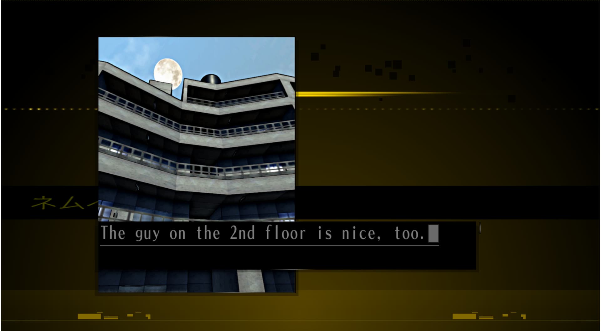 : There’s one more person on the second floor, and then we can go talk to Mizoguchi and the one guy on the fourth floor.