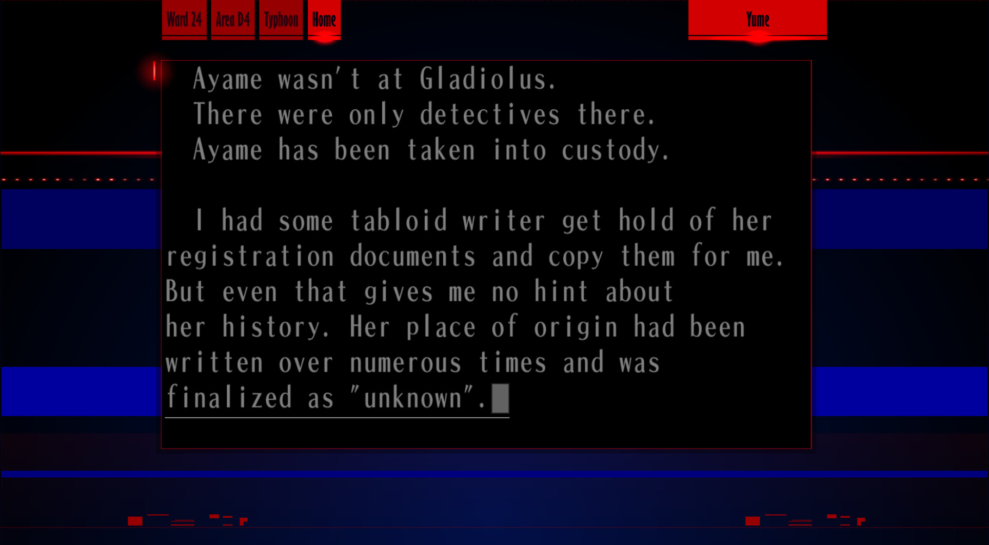 : I’ll post my recording at the end, because at this point I had already played through the entire case and spoiled who the killer is.