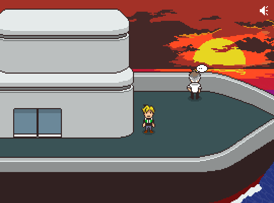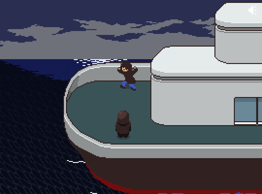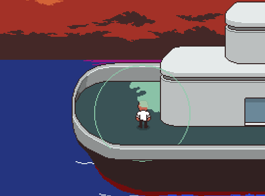 The lower passage on the third floor leads to the deck, home of a guy dressed remarkably like the detective from Ghost Trick. All he’s missing is the jacket.