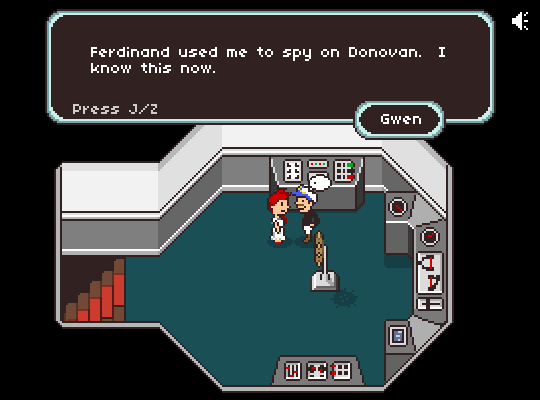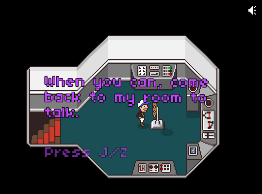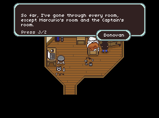Before we continue on as Alton, I just wanted to kind of show off a neat little thing. Characters in this game that are possessable won’t just stand around once you stop controlling them - each character has a couple of locations they’ll visit (they’ll usually wander around the ship or be in their room). In this case, however, we can actually use this to our advantage!