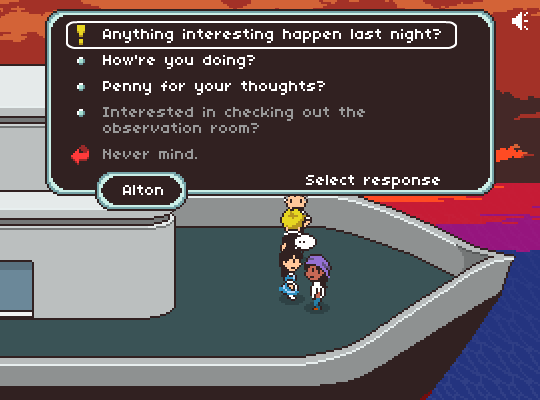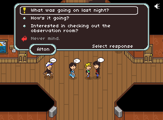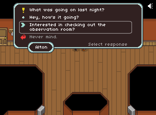 Alton can ask almost every character in the game if they want to check out the Observation Room. Let’s do that with this guy. He looks like he could use a night at a dance club.. even if the DJ is some random guy on a cruise ship.