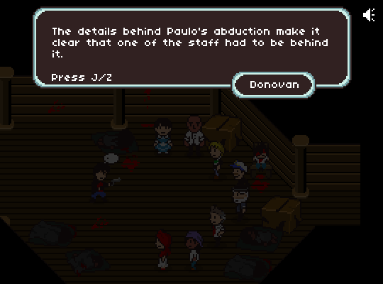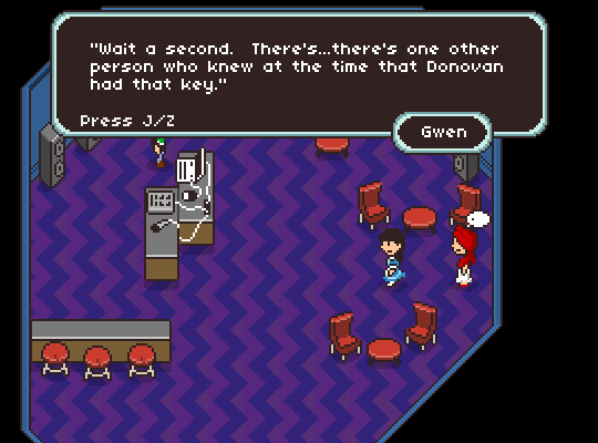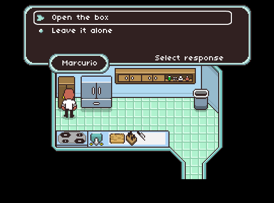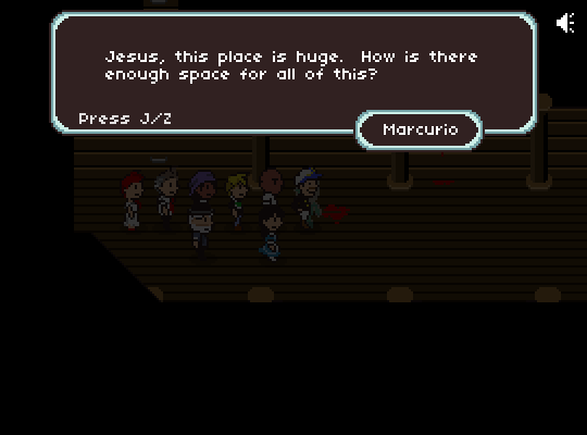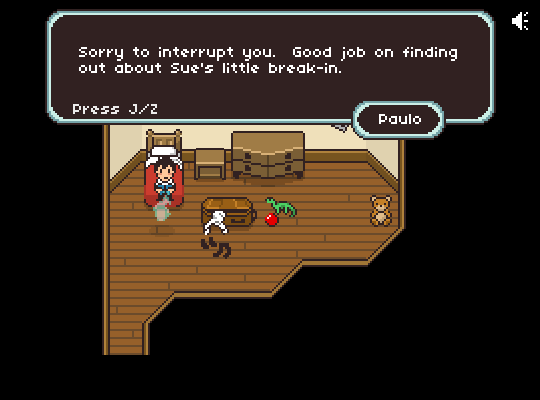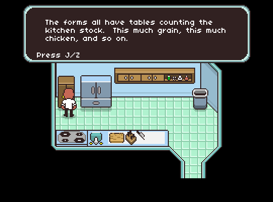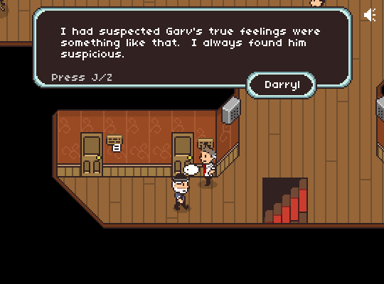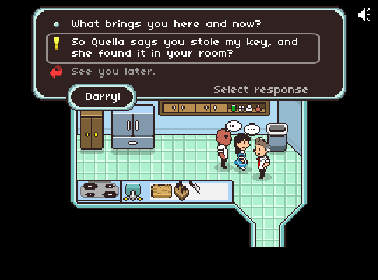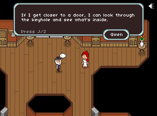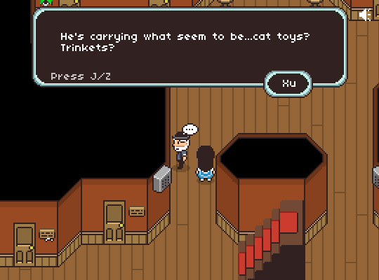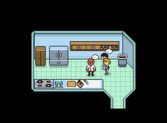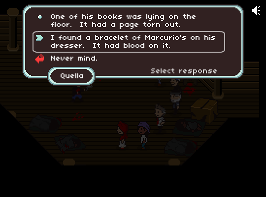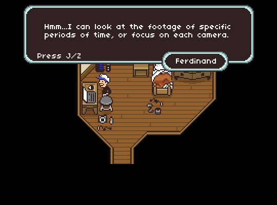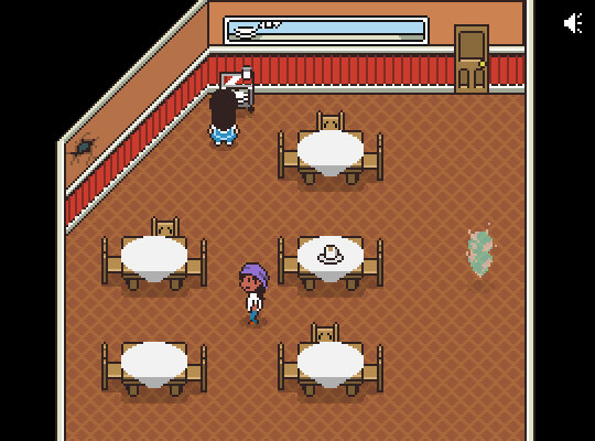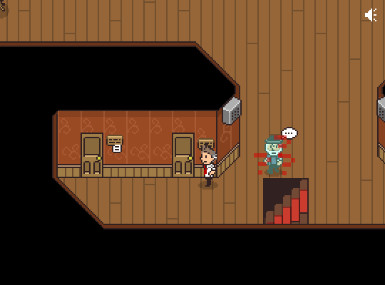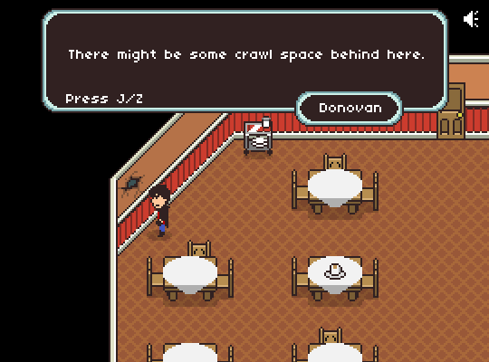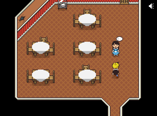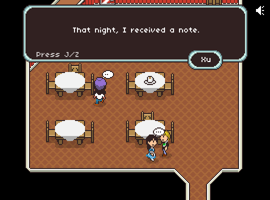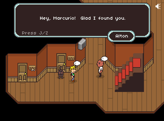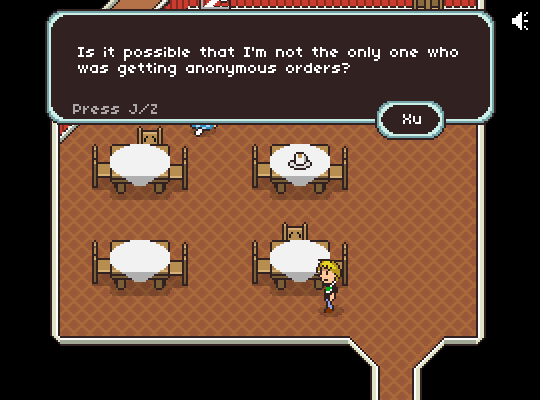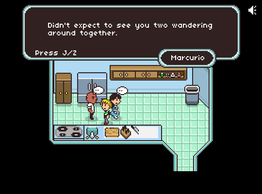 Now that we’re done questioning Ferdinand, we can go to the kitchen and talk to Marcurio. Strangely, any one of the possessable characters can enter the kitchen straight up. It hasn’t been said outright yet, but Xu is basically Marcurio’s assistant - so she at least has a reason to go in there.