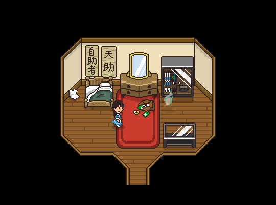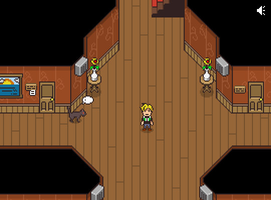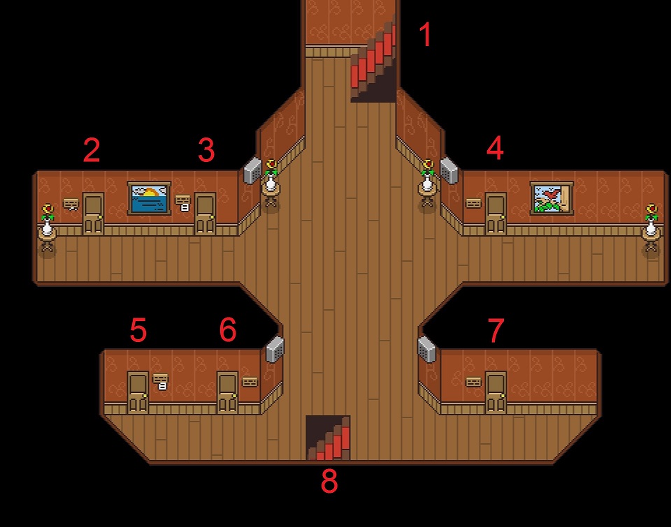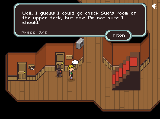 If you stop possessing Alton at this point and switch back to being the cat (say, to go save), Alton will be standing right outside Sue’s room. We could go right in, but let’s take a minute and explore the ship first. Thankfully, someone on Steam was nice enough to make a map-sized screenshot of the game, so I’ll just borrow these rather than trying to stitch together my own.