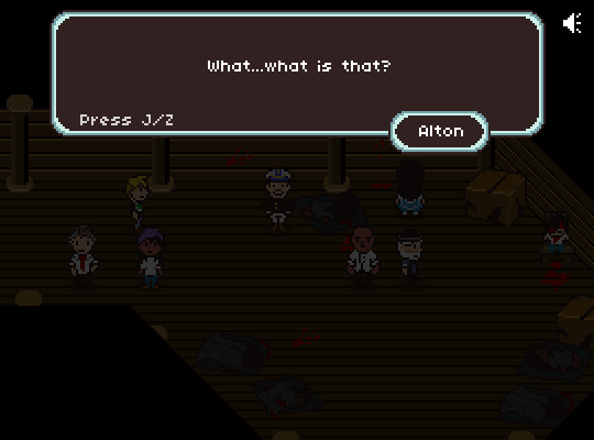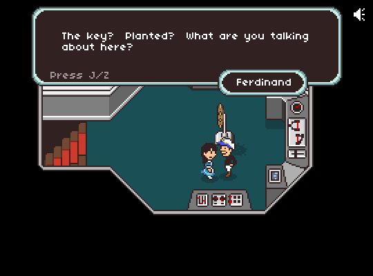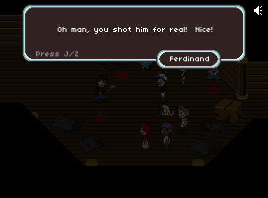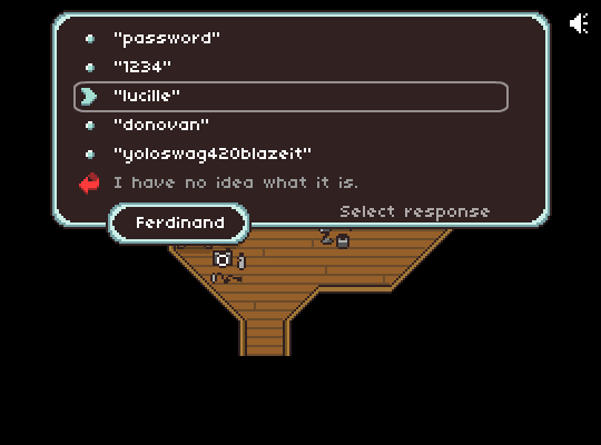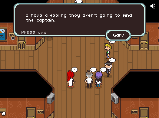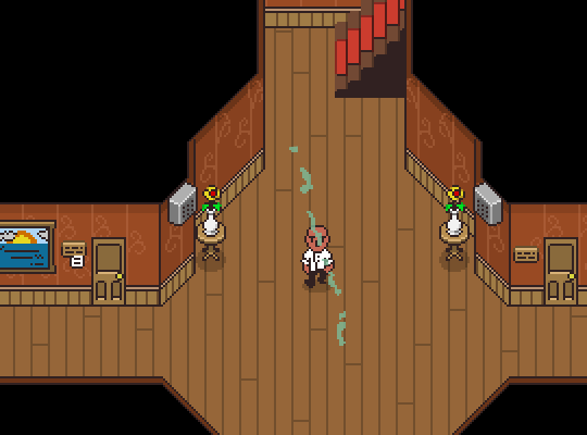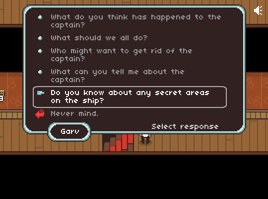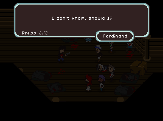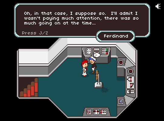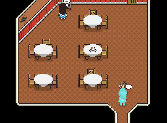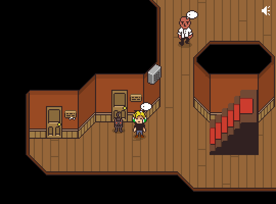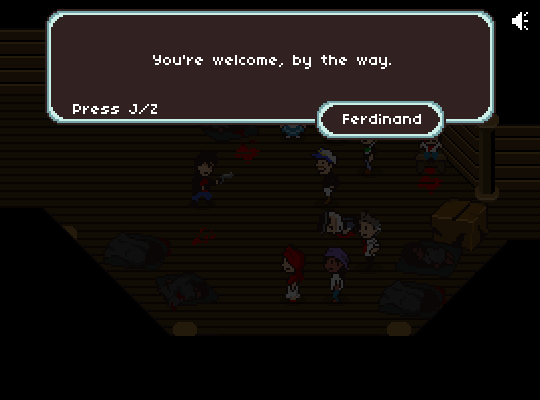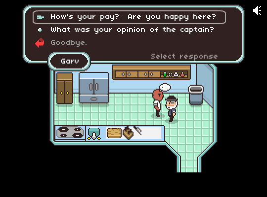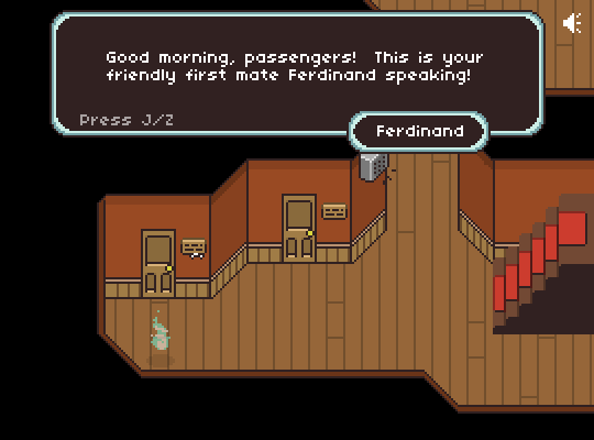 This is Ferdinand, the ship’s first mate. I won’t post his dialog just yet, because we’ll be coming back to talk to him a bit later in this update. The door across from Ferdinand leads to the dining room.