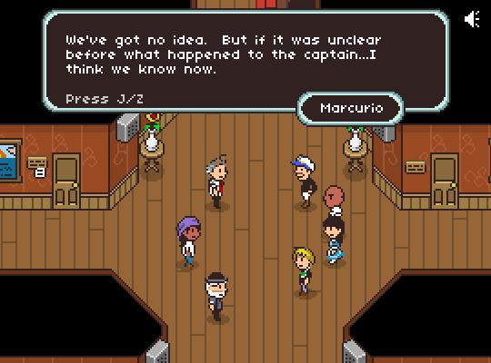 : “I’d start upstairs. Marcurio is probably in the kitchen, behind the dining room. And the first mate is… well, he’s easy to find.”