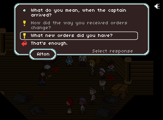 : “I don’t know if we can trust the other ship staff. We don’t know who was behind this, after all.”