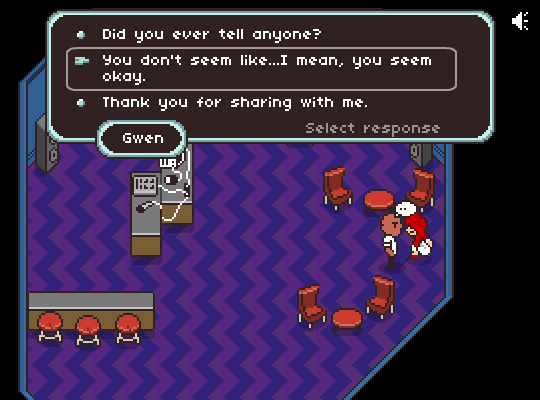 : “Oh, um… nobody was at the Observation Room last night. It was pretty quiet.”
