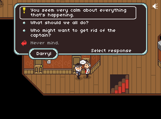 Finally, we’ve got Darryl where he’s been the entire time. We might as well talk to him now, since all of the other people on the ship tend to congregate on the lower deck.