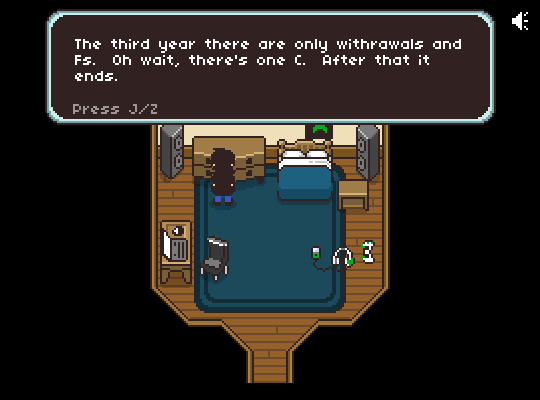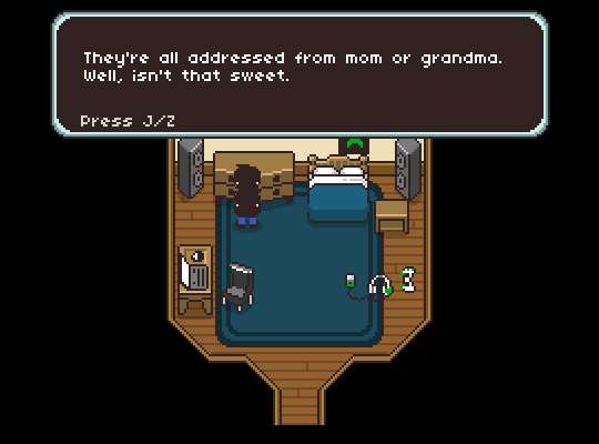 Alton’s room is on the way downstairs, so I figured I’d show off what it looks like. I think it would’ve been kind of neat if you could have Alton hide his laptop and the spare headphones (since you just know Alton is one of those people buying $700 headphones) since there’s a potential thief afoot, but alas.