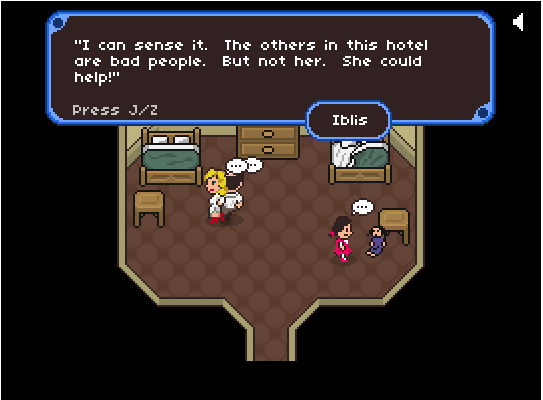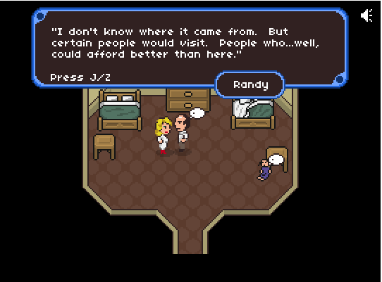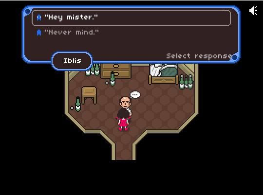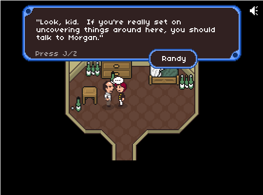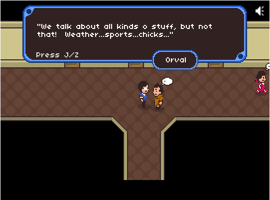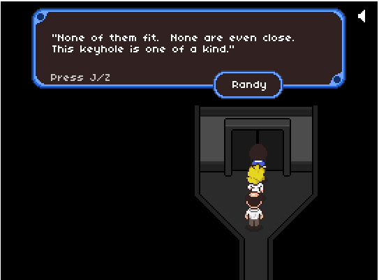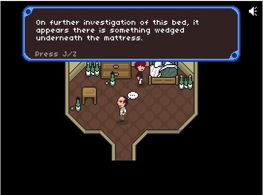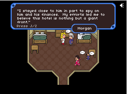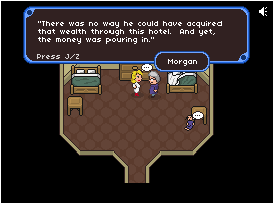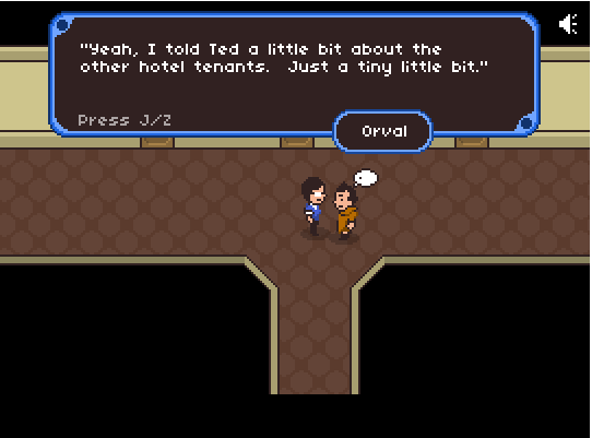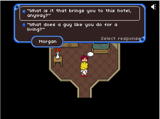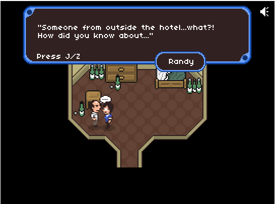I apologize for the shifting screenshot sizes here, by the way. Unfortunately, I took most of the shots for the introduction to the game while running the flash in its own window, forgetting that the game has black borders on an all-black screen. The bald guy is Randy - he’s the hotel manager.