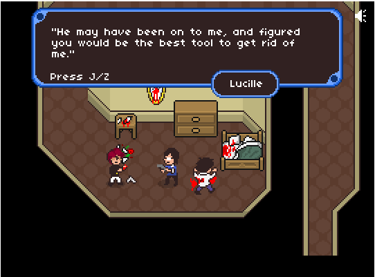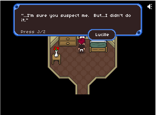 The only people without an alibi are Randy (because his room is the one behind the counter), Morgan, and Lucille. Next time, we’ll investigate them and find out what their alibis are.