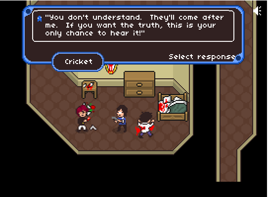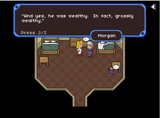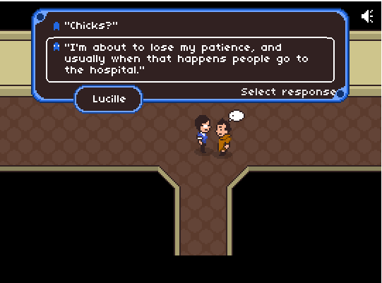 : “So we wait 'til they do make it. He’s not going anywhere.”I’m not going to bother going through every dialog option in this game like I did for Dead At Sea, mostly because it would make each update take probably five times longer. You can assume that I’m going with whichever dialog option is highlighted.