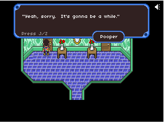 Meet “Pooper”. His name was changed from the first release of this game, where he bore the creative name of “Shitter”. I like to think he’s a copyright-friendly clone of Oscar the Grouch who lives in a toilet rather than a garbage can.