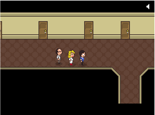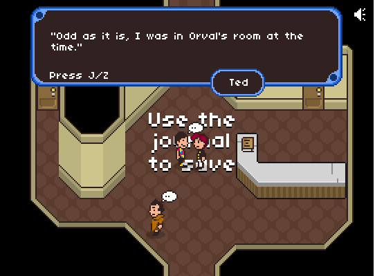 Now we’re in the entryway to the hotel. That bottom doorway leads outside, but it remains blocked for the entire game. What we need to do here is talk to Ted, the guy that looks like he’s trying really hard not to be Ferdinand.