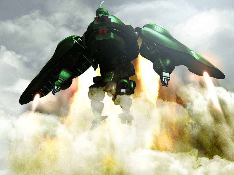He joined the team with a standard MP robot. It was only during the battle in the Pacific when he upgraded it to the superior ace custom Zombio. Note the command horn.