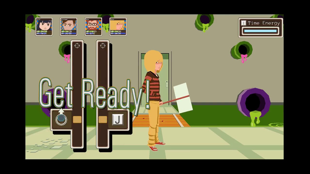 : He picks a person to cover, and I think his defense is applied to the attack instead of theirs. He also takes any damage they would otherwise take. Since most things go down in a hit or two at this point, Rory is worse than useless because having to do two extra button presses (plus an attack “animation”) just adds to how slow combat is. Rory’s “weapon” is a protest sign.
